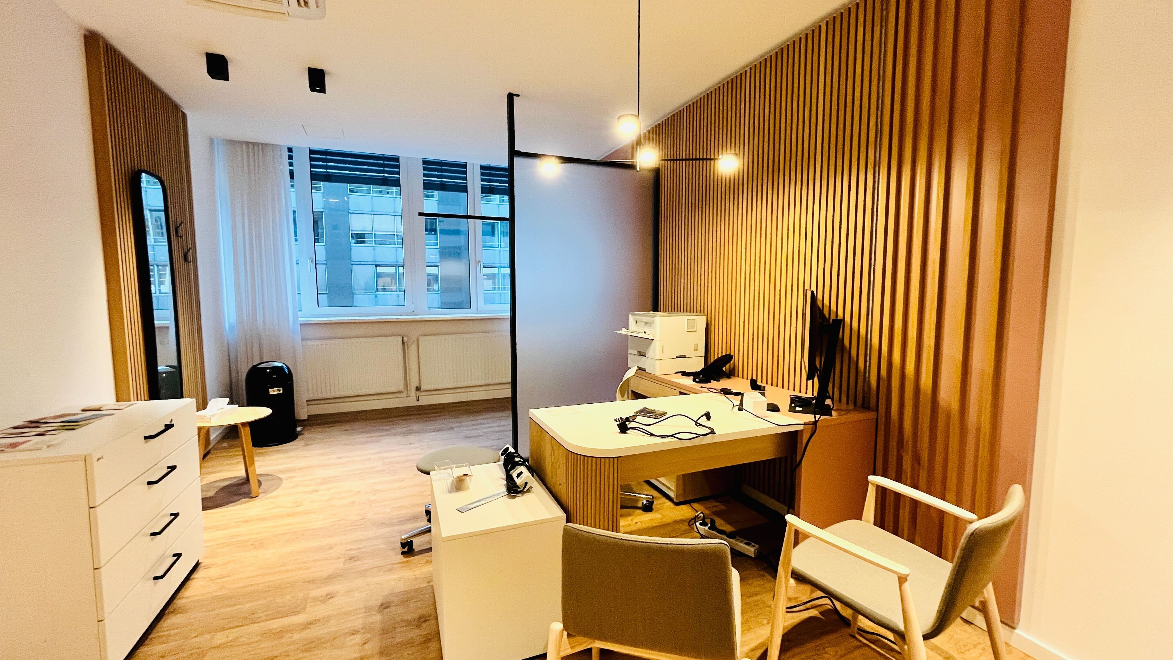 Die Einheit liegt in einem Mehrnutzer-Büro-/Praxis- und Geschäftsgebäude und eignet sich besonders für medizinische Nutzungen wie Arztpraxen, MVZ, Labore, Therapie- und Diagnosezentren sowie verwandte Dienstleister. Flexible Raumaufteilung ermöglicht Empfangsbereich, Behandlungs- und Laborflächen.