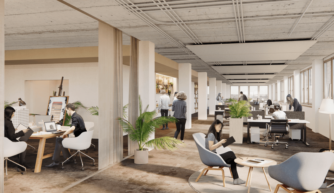 Klassische Backsteinfassade, zeitgenössisches Innenraumkonzept und moderne Ausstattung bieten vielseitige Nutzungsmöglichkeiten für offene Arbeitslandschaften, Teamzonen und Besprechungsbereiche. Die großflächige Terrasse erweitert die Nutzfläche und schafft attraktive Außenbereiche für Pausen oder informelle Meetings.