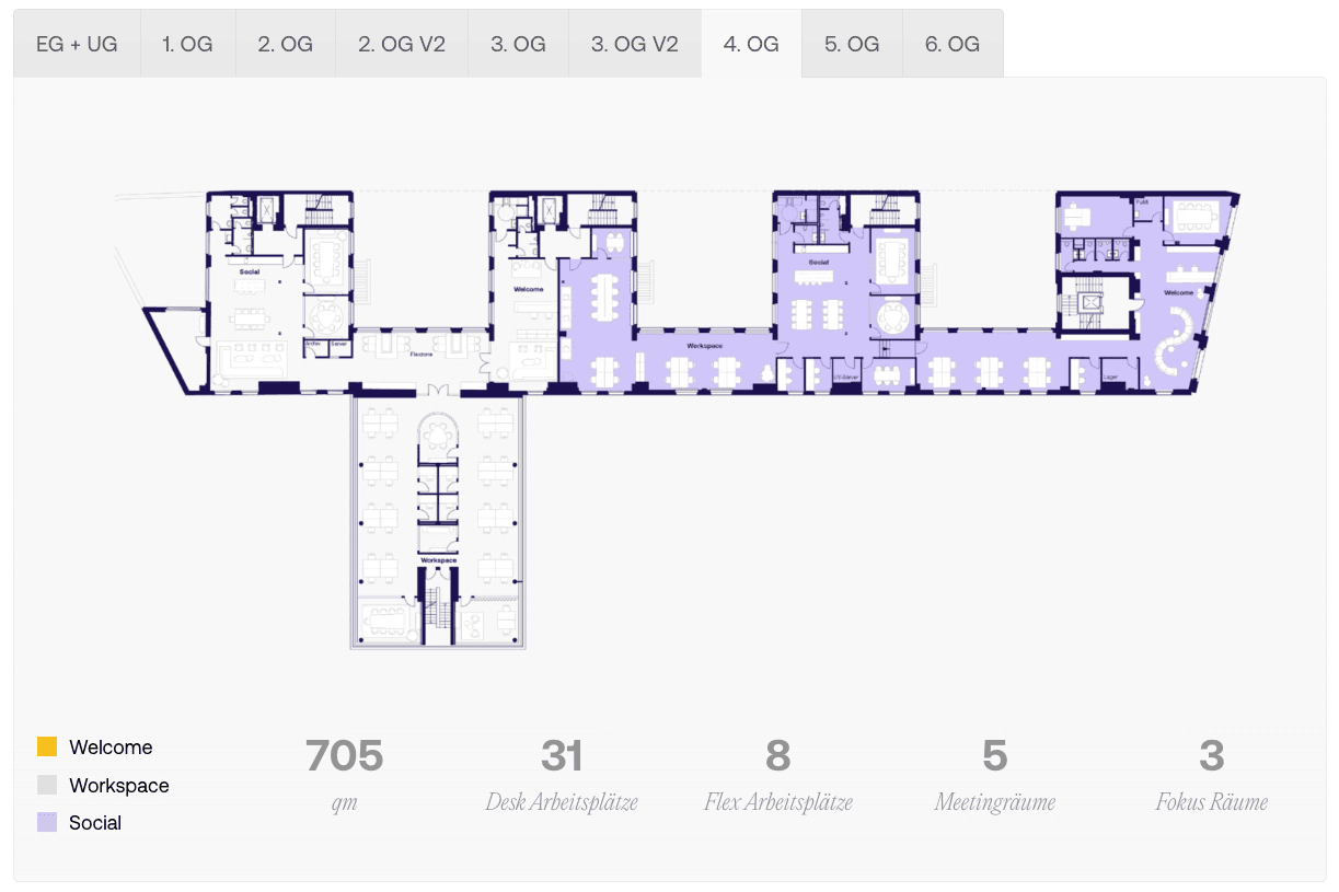 Attraktive Büro- und Coworking-Etage im 4. OG an der Wallstraße 16, 10179 Berlin‑Mitte: 705 m² offen und zoniert für modernes Arbeiten. Die Fläche bietet 31 feste Desk‑Arbeitsplätze, 8 Flex‑Plätze, 5 Meetingräume und 3 Fokusräume und verbindet konzentrierte Arbeitsbereiche mit großzügigen Social‑ und Welcome‑Zonen. Das T‑förmige Grundrisskonzept mit zentralem Korridor fördert Begegnung und kollaboratives Arbeiten, während separate Fokusräume und Meetingbereiche Rückzug und Besprechungen ermöglichen. Serverraum sowie Archiv-/Lagerbereiche unterstützen Ihre IT‑ und Infrastrukturbedürfnisse. Die Lage im Herzen Berlins garantiert exzellente ÖPNV‑Anbindung sowie eine große Auswahl an Restaurants und Services – ideal für hybride Teams, Startups und Unternehmen, die flexible, repräsentative Bürostrukturen suchen.